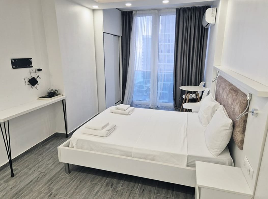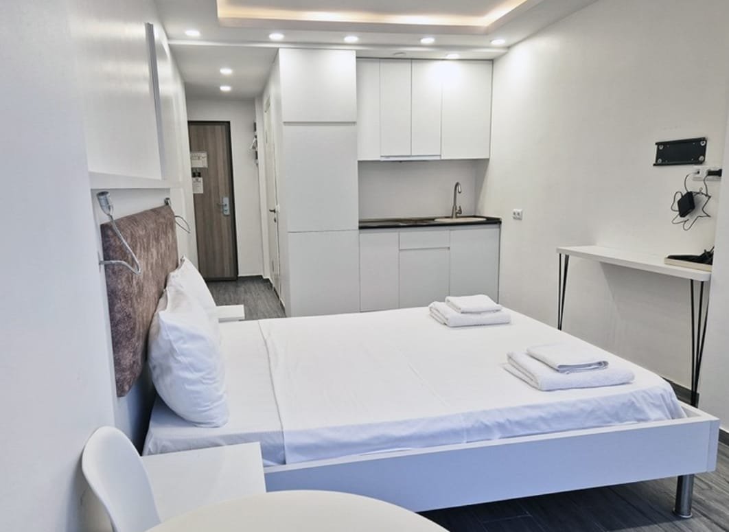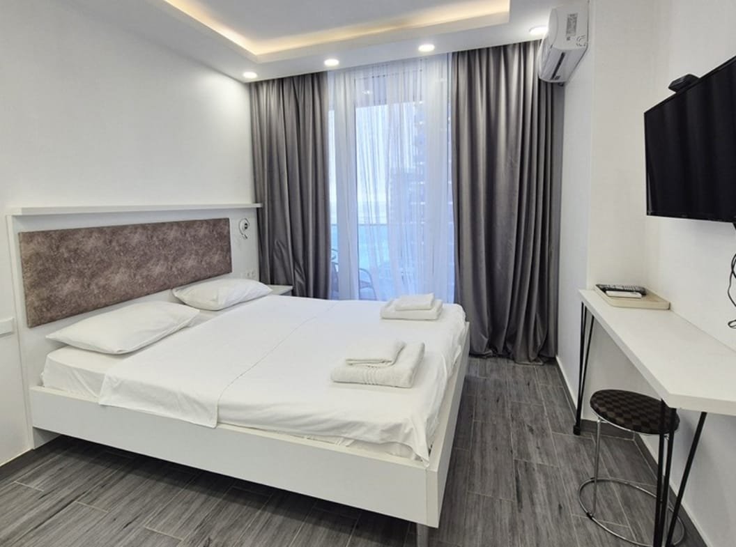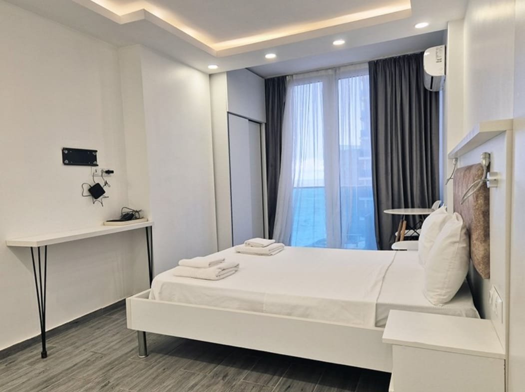 Two Connected Studios with Sea Views in Sunrise ELT Quarter. Located on New Boulevard along the Black Sea coast, these two apartments are available for sale in the Sunrise residential complex. The 15-story building features striking architecture, and this unit on the 15th floor offers nice view of the sea. This property features two adjacent studio apartments with a combined total area of 50.50 sq.m (25.8 + 24.7 sq.m). You can keep them separate or connect them by installing a door, creating a larger, cohesive living space. Each studio is thoughtfully designed with a bed, bathroom, fridge, washing machine, and fully equipped kitchen. The building also has a gas supply, offering the option for installation if needed. The Sunrise complex along with the whole “ELT Quarter” provides extensive amenities: a landscaped courtyard with children’s playground, both covered and open parking, an outdoor pool, jacuzzi, fire safety system, summer cinema, and café-bar. Built with advanced technology and premium materials, the building meets all modern standards. The location offers everything needed for a comfortable lifestyle: 24-hour convenience stores, shopping centers, restaurants, charming cafés, and the Metro City shopping and entertainment complex. Best of all, the beach is just 100 meters away.Best sea View around property.