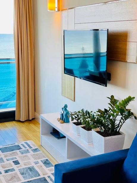 3-room MODERN apartment for sale in the ‘Panorama’ complex ORBI CITY – sea view from the first line! Area: 78 m², 14th floor, rooms: living room + 2 bedrooms, location: first beachfront line, views of the Black Sea. Bright and very comfortable apartment, fully equipped with necessary items for comfortable living or renting.