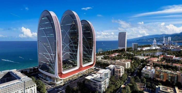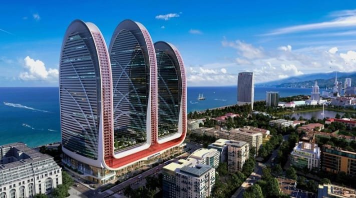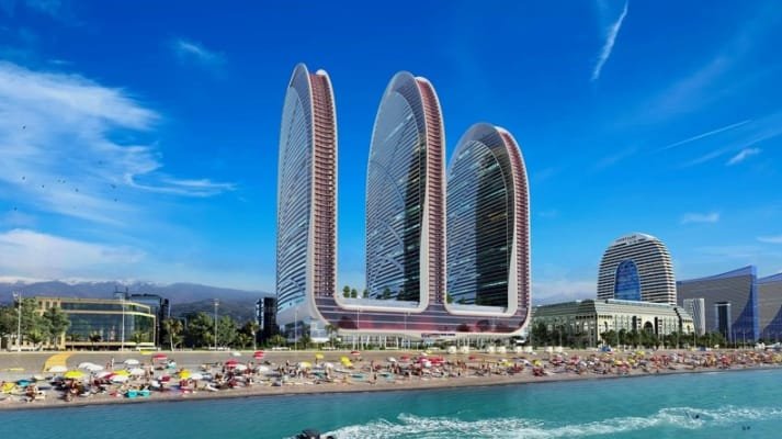 Residential complex Alliance Centropolis in Batumi is being built in the central part of the city. The exact location is 63 Rustaveli Avenue. The new building is located on the first line from the coast, 50 meters from the sea and next to the beach.