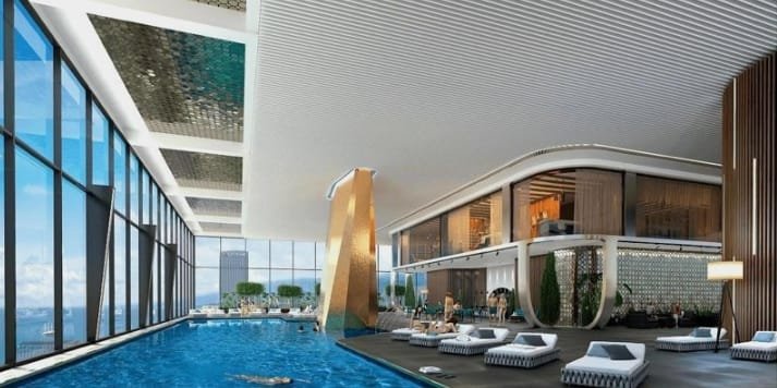 The skyscrapers are constructed of high-quality building materials. High structural strength and seismic resistance are provided by a reinforced concrete foundation and the monolithic frame. The facades of the buildings will be decorated with stained glass windows.