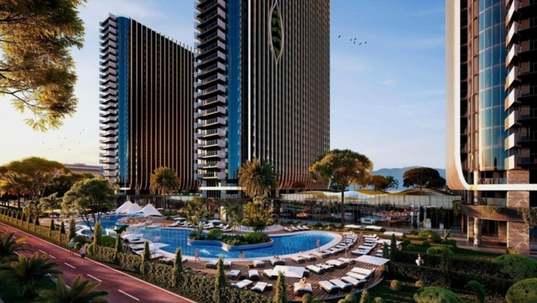 The project consists of three high-rise towers ranging from 28 to 44 floors, offering stunning sea views and modern coastal living.
