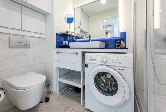 Sunnyside Seaview 2 Retro-style Medea refrigerators and mini bar microwave electric stove full cookware set bed linen and towels washing machine dryer folding chair YUSK furniture