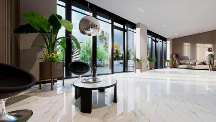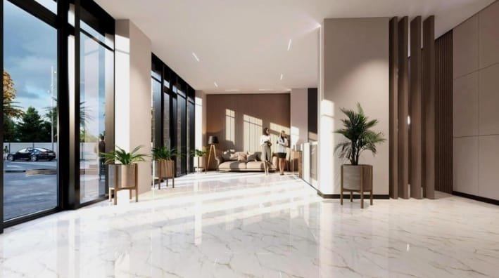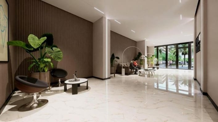 Lobbies and shared spaces are finished with care and style, incorporating high-quality materials, warm lighting, and modern décor to create an elegant and welcoming environment. Soft seating areas, planters with lush greenery, and floor-to-ceiling windows bring natural light and warmth into the interior. The result is a sophisticated yet relaxing atmosphere.