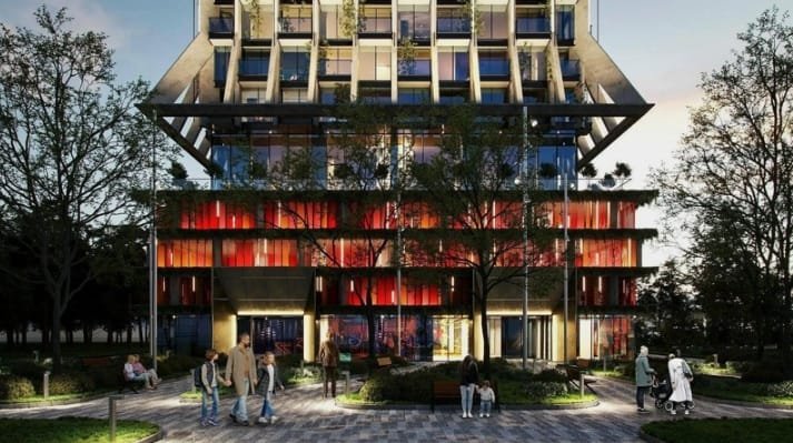 The buildings are united by a shared podium and are constructed using environmentally friendly materials and cutting-edge technology. Durable ceramic brick is used for the walls, and the façades are insulated with long-lasting thermal materials.