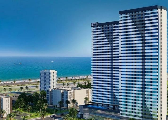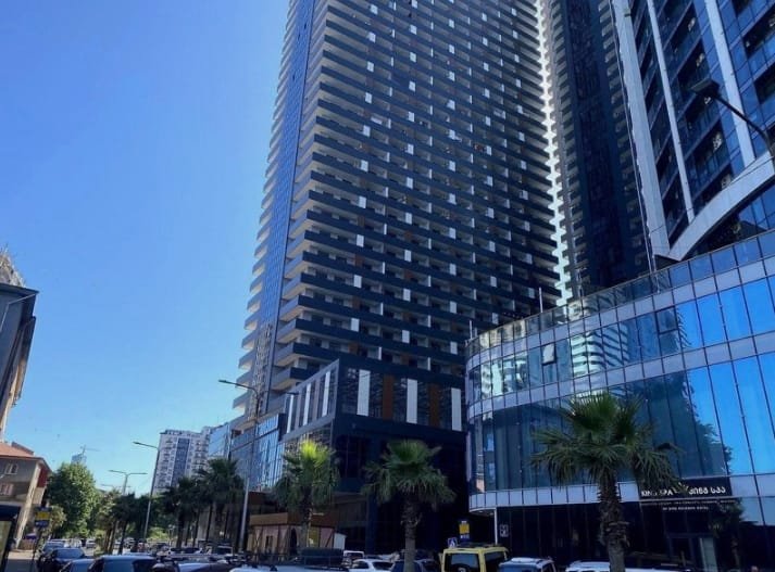 Intourist Residence in Batumi consists of two buildings with 37 floors and a monolithic reinforced concrete frame and pumice walls. In the first block, floors 1 to 15 are reserved for hotel accommodation while the apartments are located on the upper floors. In the second block, the 1st to the 4th floor are reserved for retail and offices and the residential apartments can be found from floor 5 and up. Each block has 4 elevators, 3 for passengers and 1 for freight. The interior of the common halls is decorated with natural granite and porcelain. The buildings have their own underground parking while the premises is guarded with the latest CCTV technologies.