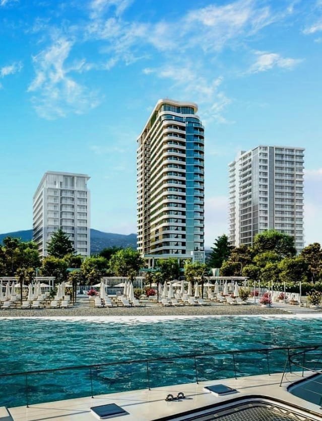 Kolos in Makhinjauri is being built in the suburbs of Batumi, at 1 Megobrob, just 100 meters from the sea. This is a cozy and green area surrounded by mainly cottage-type houses. There is a railway line 50 meters from the complex and actively developing infrastructure. The center of Batumi is just over seven kilometers.