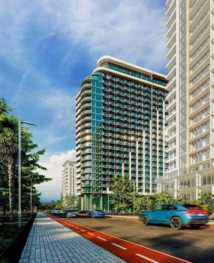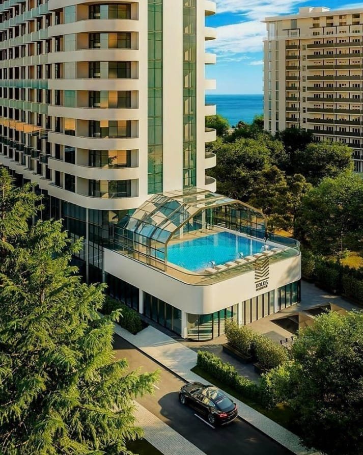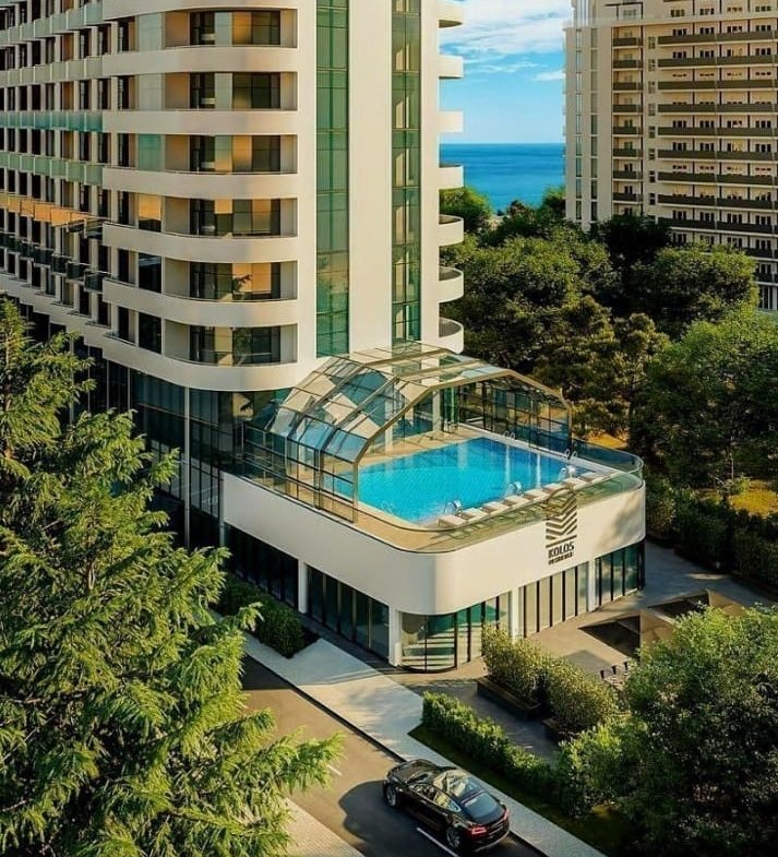 Residential complex Kolos is a contemporary mid-rise tower with fifteen floors, designed in a modern style and being built using advanced technologies. Due to its unusual architecture and floor to ceiling windows on the lower floors, the building will stand out against the background of the general development of the suburbs of Batumi.
