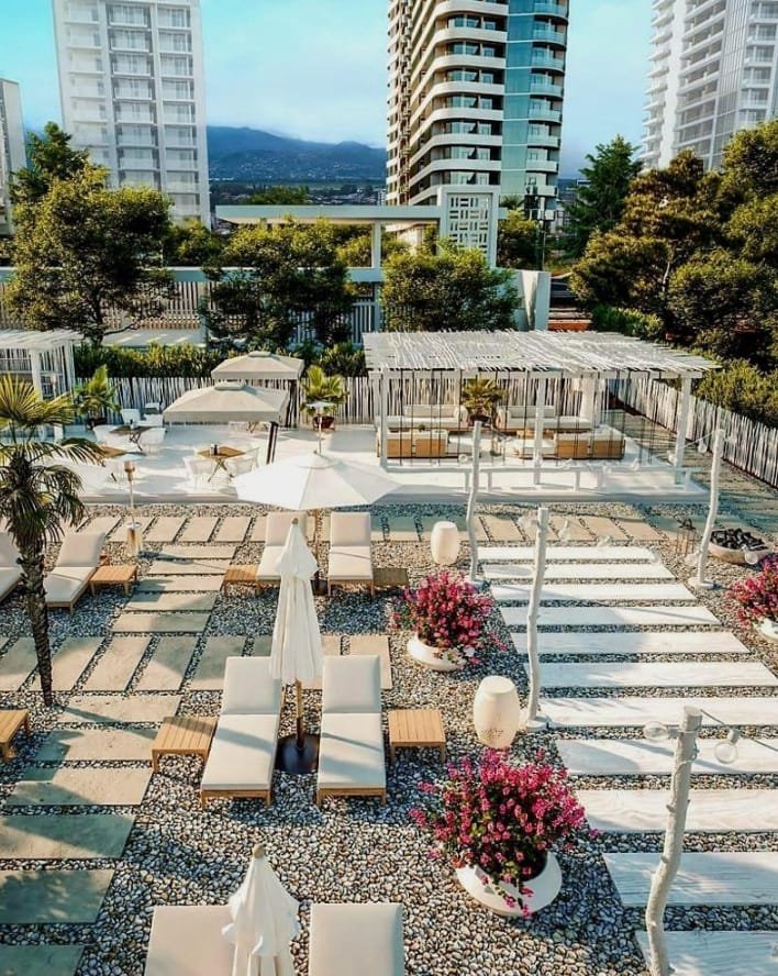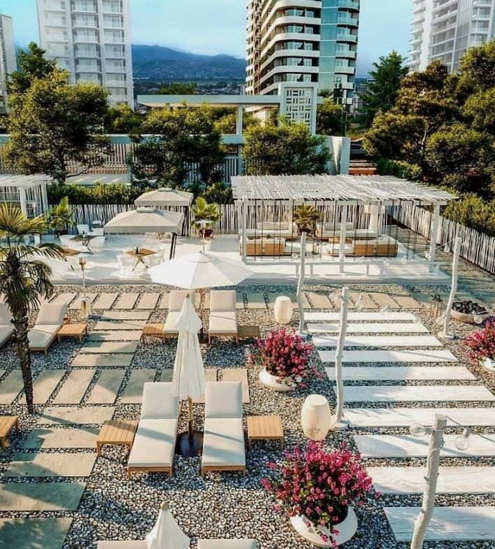 In the area of the complex, there are a large number of various hotels and shops, and the beach is located nearby. In a five-minute walk, there is a large supermarket, several cafes and restaurants, a bank branch, and an educational institution. The Botanical Garden and the observation deck are about 2.5 km away, and the State Music Center of Batumi is less than three kilometers.