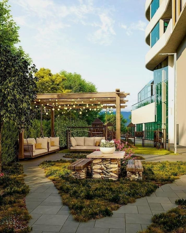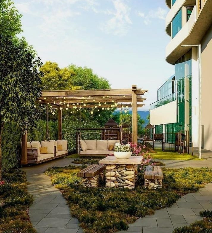 | 🟧Infrastructure | commercial areas, closed area, Playgrounds, swimming pool, fitness room, spa, terraces with panoramic sea and mountain views |
