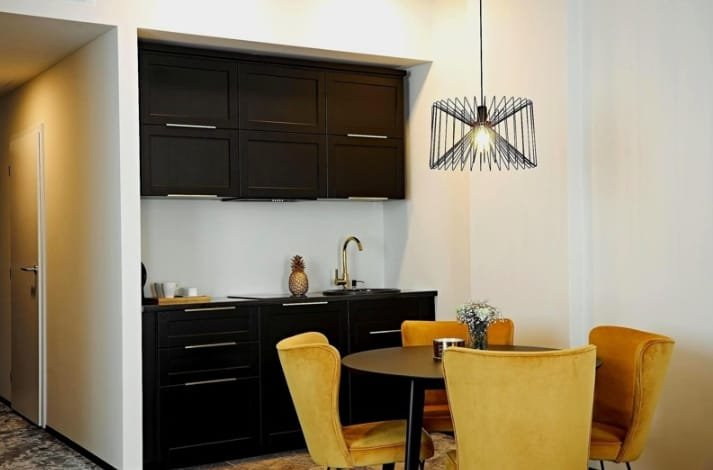 The complex offers 49 options for layouts of apartments of different sizes. The buyers can choose compact studios and comfortable one- and two-bedroom housing from 32 to 62 square metres.