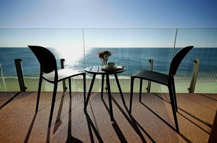 Apartments for sale are fully renovated. According to the project, the panoramic windows with energy-saving double-glazed windows are installed, and stained-glass glazing of balcony doors is made. This type of glazing provides decent insolation of the apartment and allows you to admire the opening views of the sea and the city.