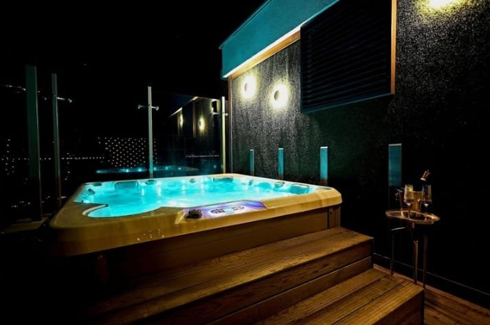 • Sky bar with panoramic sea and mountain views.
