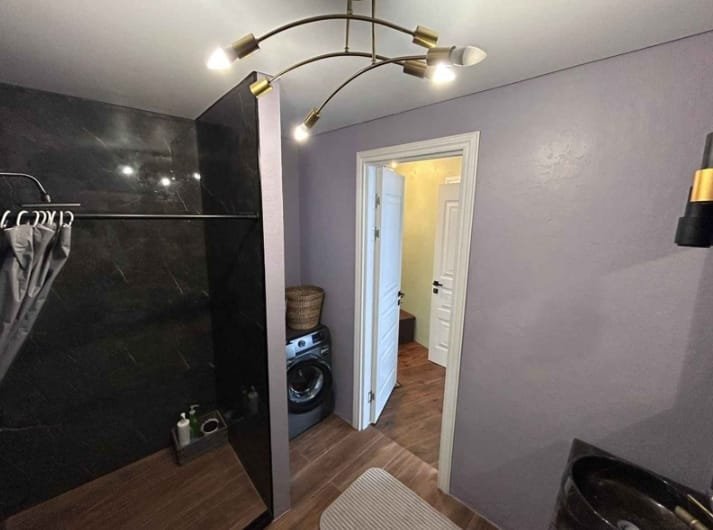 Equipped with all furniture and appliances, at the entrance there is a closed small dressing room, a large bathroom with a section where you can install a wardrobe and install a washing machine in the middle.