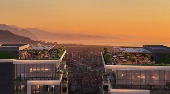 The development takes into account the region’s unique climate and seismic conditions and is built to international standards. Construction uses eco-friendly materials and advanced technologies that guarantee excellent long-term performance. The flat roofs are equipped with modern drainage systems and waterproofing, while the reinforced concrete frame ensures earthquake resistance.