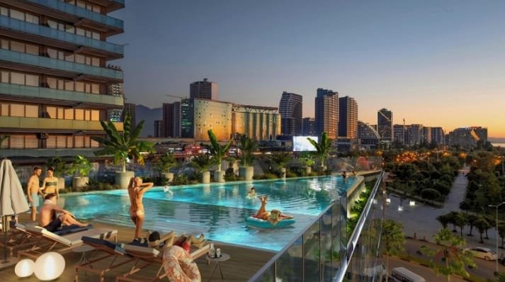 Most of the neighboring buildings are apartment complexes and hotels for vacationers. The infrastructure in this part of Batumi is not as diverse as in the center, which is located about 3 km from the complex, but the necessary facilities are present here. Nearby are the Batumi Mall, the Republican Children’s Hospital, the Europark water park, and the Marine Engineering Academy of ANRI. Nearby is the park of Lech and Maria Kaczynski, where residents and guests can find a number of entertainment facilities. A wide range of cafes and restaurants are available around the complex.