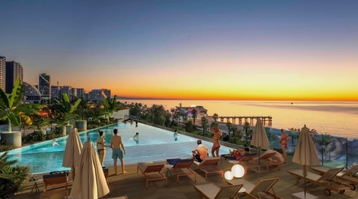Residential complex Olympus Residence consists of two 40-story towers which are located 10 meters from the beach. The complex belongs in the premium category and all units here come with sea views.