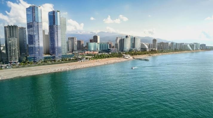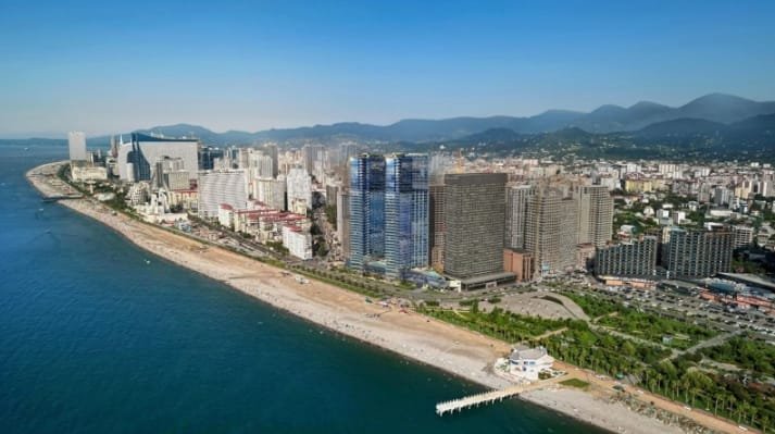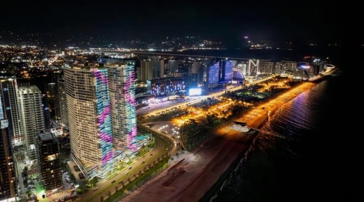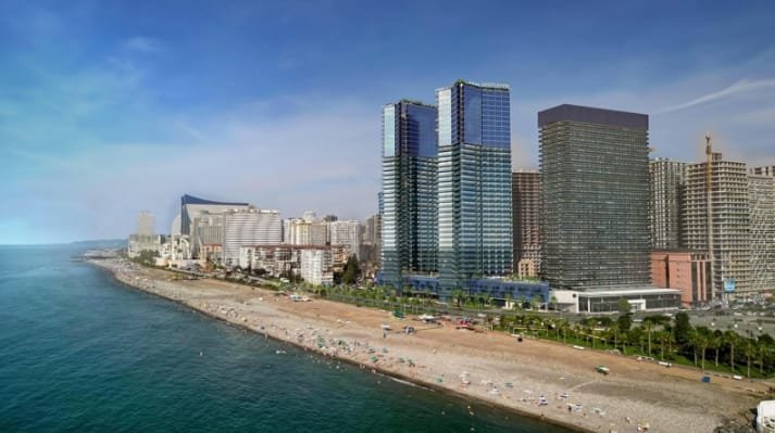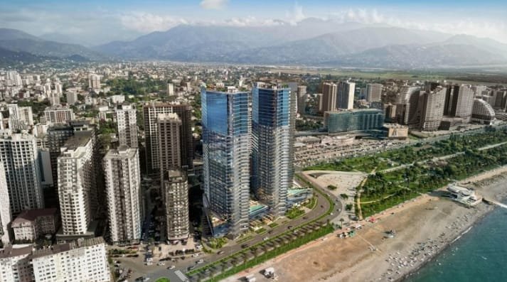 Olympus Residence Batumi is a multifunctional residential complex consisting of two modern buildings that come with 40 floors each. The East Tower and the South Tower have slightly curved shapes, which made it possible to provide sea views from the windows of most apartments.