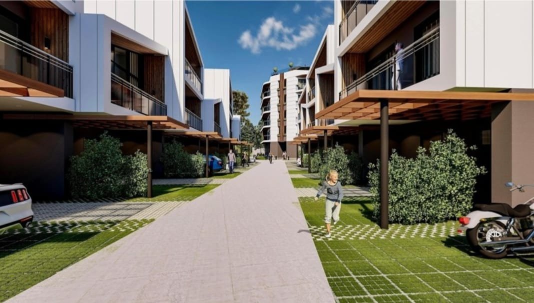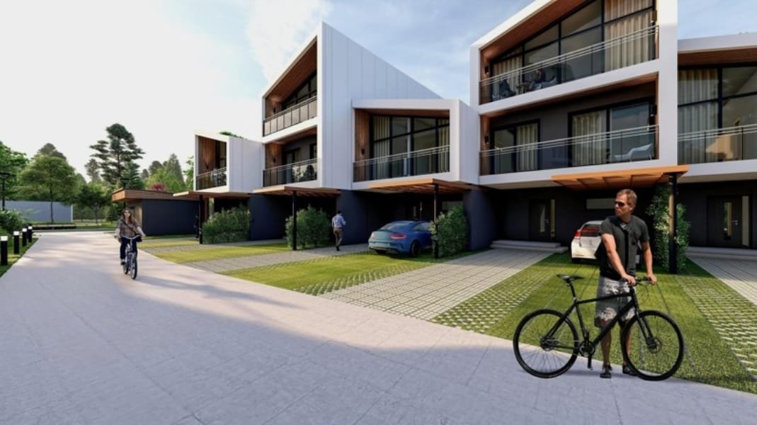 Royal Residence Botanico features a modern five-story residential building and 17 two- and three-story townhouses. The project was designed by an international architecture firm known for working with brands like Marriott and for developing high-end commercial and hotel properties.