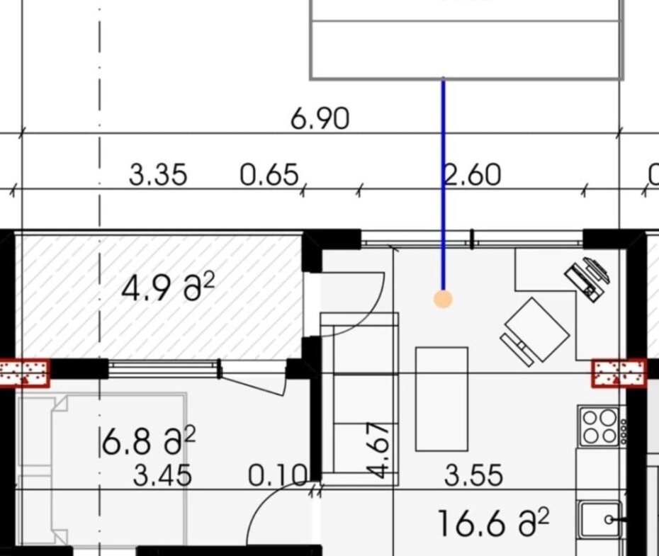 Kobuleti, David Agmashenebeli street 190 Area – 38.5 m² | you may have your own layout, but according to the project (1+1) (1 minute to the sea | First line) Gas, electricity, water are all there The layout and area of the premises: • Living room: 6.8 m² • Kitchen-living room: 16.6 m² • Bathroom: 3.8 m² • Hallway+corridor: ~1.5 m² • Balcony: 4.9 m² Total area: 38.5 sqm Condition: green frame — you can equip and replan it to suit your own needs. Advantages: • The windows and balcony face the side with a beautiful view (sea or mountains) • Functional zoning: kitchen with large living room+separate bedroom • Great option for rent or personal accommodation • The ability to make high-quality repairs for yourself Location: • The beach is only 100 m away • Address: David Agmashenebeli 190, Moscow Kobulets • Everything you need is nearby — shops, cafes, pharmacies, transport, school (code 2510) Price 50050$
