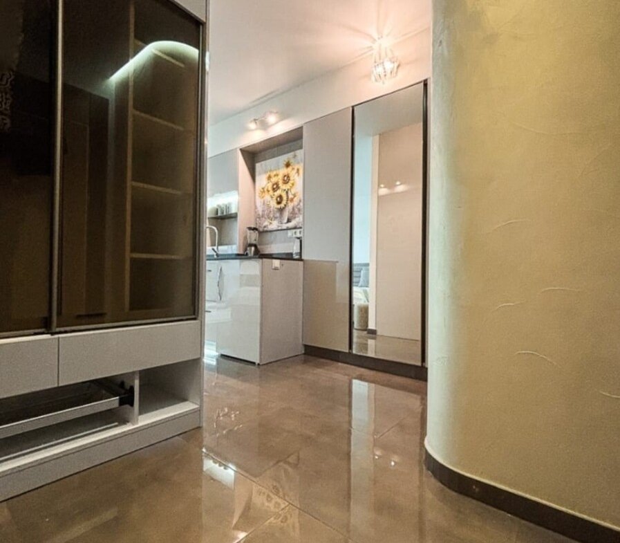 🏡 What makes this studio special: • Space — 42 m²: maximum air and light • Perfect 5th floor — comfortable access+impressive view • Panoramic views of the sea, promenade and evening sunsets • Fully furnished, there is everything for living and relaxing • Modern renovation: warm floor, air conditioning — comfort all year round • Absolutely ready to move in or rent out from day one