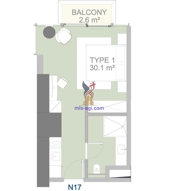 • Area: 32.7 m² (effective layout without dead zones)